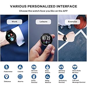 - 【Sync Notification】The smart watch can quickly receive several instant messages (including Facebook, Wechat, WhatsApp, QQ etc and other APP messages), no worry about missing any events. You can also set up various reminders such as incoming calls, alarm clocks, sedentary warnings, meetings, taking medicine and drinking water. It can store the latest 3 information. The watch can not answer a phone call. Press and hold the key to hang up the phone.