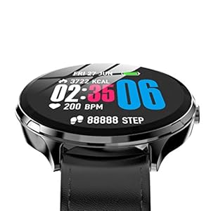 - 【Genuine Leather band & Multifunction】:100% Genuine Leather band, 12/24H time display, Heart rate/Blood pressure /Sleep monitor, calories calculation,Auto pedometer, Clock alarm, Multi-Sports mode, Stopwatch, Sedentary reminder, Remote camera , Call /SMS /Message reminder etc.