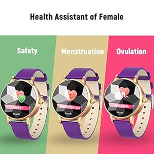 - 【Female’s intimate health assistant】-This fitness wristband will remind you your Menstrual cycle (Period,Safety period,Ovulation),and track your all-day activities,record your steps, distance traveled and calories burned, also provide water drinking/medication/sitting/meeting reminders to give you more control of your life.