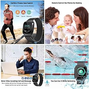 CatShin Smart Watch Activity Tracker-CS08 Multi-Sport Mode IP68 Waterproof Fitness Tracker with Heart Rate Monitor Pedometer with Step/Calorie/Distance Counter with Message Alert for Android IOS… : Bought to my wife for daily sport activity and to use in the office as well. Message from watch up comes instantaneously and can store last 3 messages. She use it in swimming pool and is water resistant perfectly, pedometer is very good , it conts the steps perfectly.