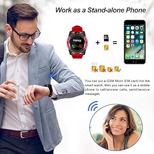 - 【Two Working Modes】: Normal Mobile Phone Mode: If you insert a GSM 2G/2.5G Network SIM Card into the smartwatch, you can make phone call directly from the smart watch, including answering and dial-up send and receive SMS messages etc. Bluetooth Smart Watch Mode: If don’t put a SIM card, you can connect smartwatch with your phone by bluetooth, then you can make phone calls, including answering and dial-up, view text messages, but can not reply message in this mode.